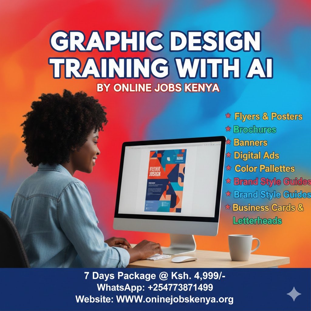 Online Jobs Kenya offers a cutting-edge Graphic Design Training with AI program, designed to equip you with both foundational design skills and the latest generative AI tools. This course teaches you how to leverage AI to automate tedious tasks like background removal and resizing, while mastering text-to-image prompts for rapid concept generation. You will learn to create professional logos, social media marketing kits, and brand identities with a competitive edge, significantly reducing your production time without compromising on creativity.