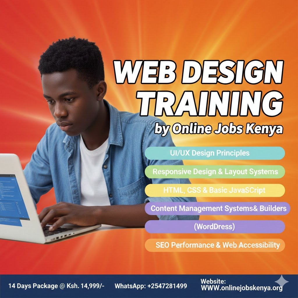 Master the art of creating stunning, high-performance websites with Online Jobs Kenya’s comprehensive 14-day training program. This hands-on course covers everything from UI/UX principles and coding basics to WordPress mastery and SEO optimization. Whether you’re a beginner or looking to upskill, you’ll gain the practical expertise needed to launch a successful career in the thriving digital economy.